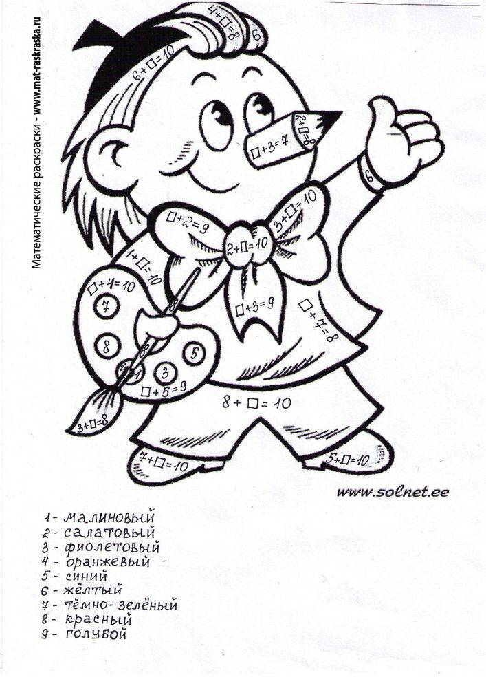 Понравились математические раскраски? Предлагаем Вам посмотреть раскраски по русскому языку и другим предметам: https://www.mat-raskraska.ru/products