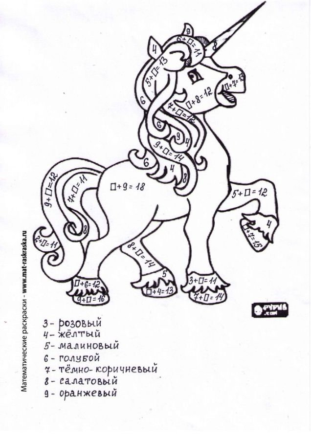Понравились математические раскраски? Предлагаем Вам посмотреть раскраски по русскому языку и другим предметам: https://www.mat-raskraska.ru/products