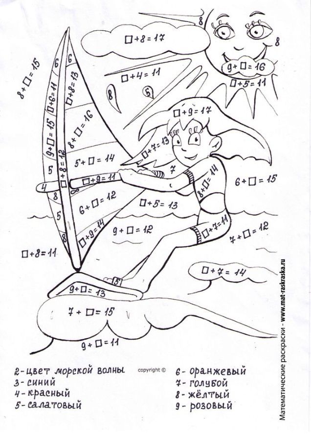 Понравились математические раскраски? Предлагаем Вам посмотреть раскраски по русскому языку и другим предметам: https://www.mat-raskraska.ru/products