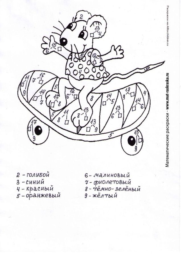 Понравились математические раскраски? Предлагаем Вам посмотреть раскраски по русскому языку и другим предметам: https://www.mat-raskraska.ru/products