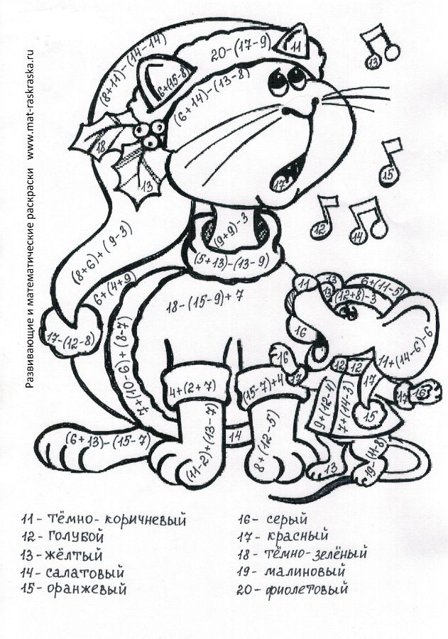 Понравились математические раскраски? Предлагаем Вам посмотреть раскраски по русскому языку и другим предметам: https://www.mat-raskraska.ru/products