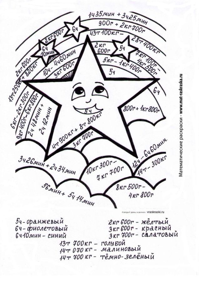 Понравились математические раскраски? Предлагаем Вам посмотреть раскраски по русскому языку и другим предметам: https://www.mat-raskraska.ru/products