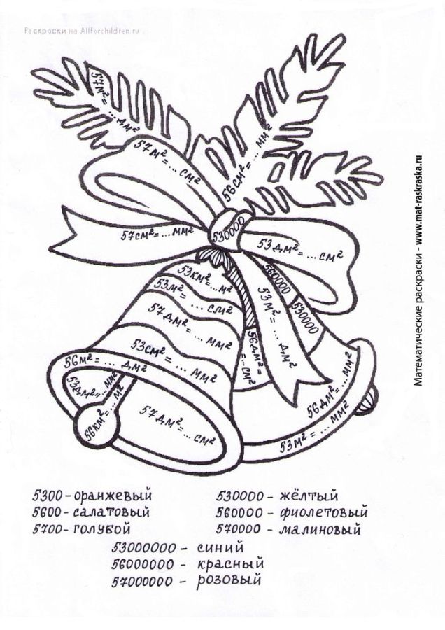 Соотношение единиц плошади. (Два варианта) Новогодние колокольчики