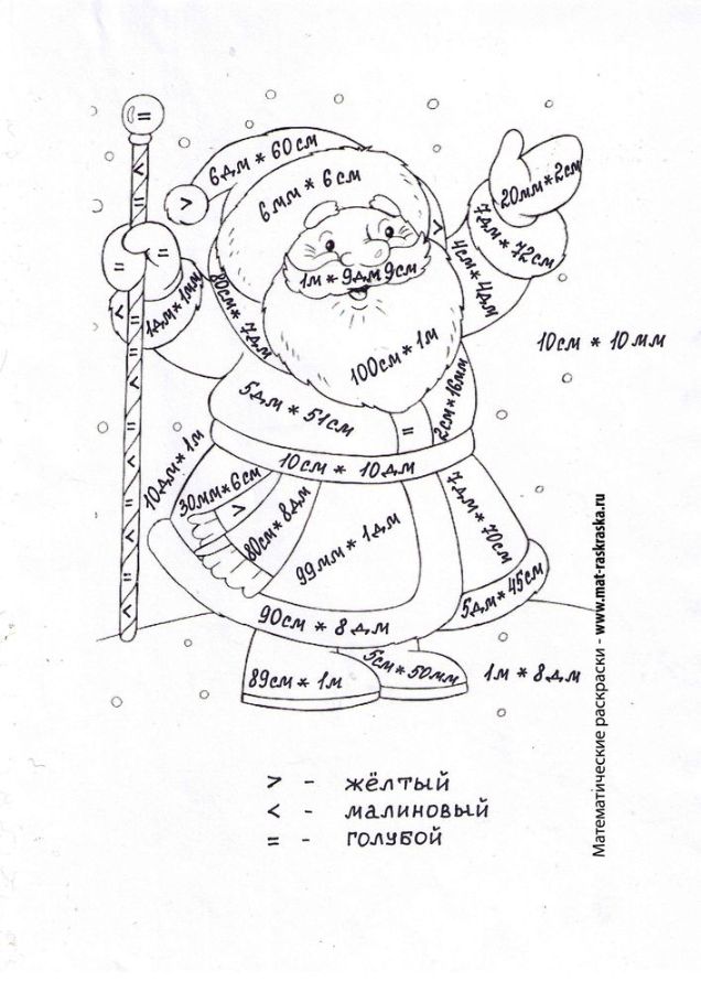 | Соотношение между величинами - единицы длины. (Два варианта) Дед Мороз |