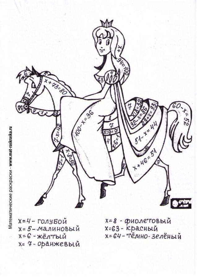 | Уравнения - сложение, вычитание, умножение, деление в пределах 100. Принцесса |