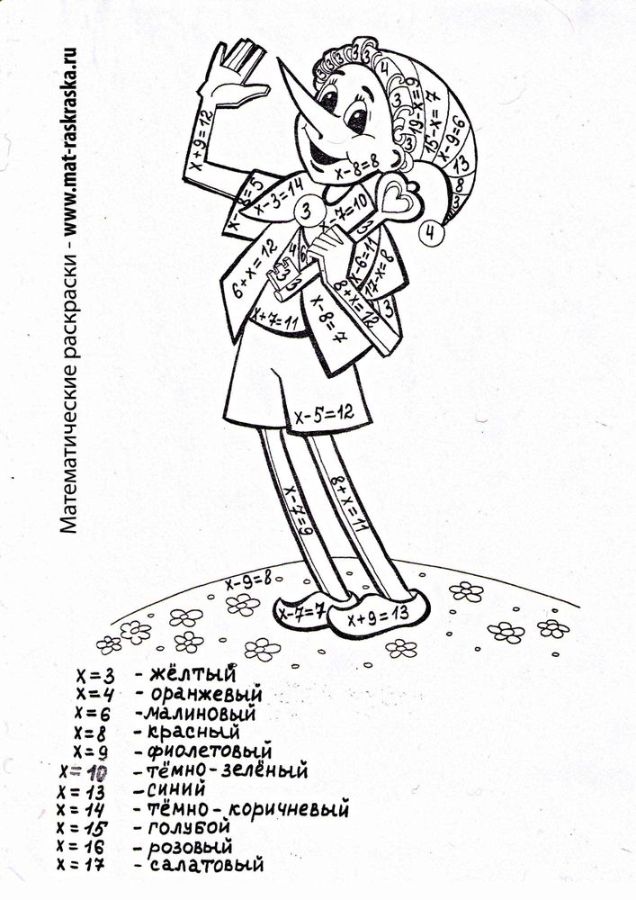 Уравнения - сложение и вычитание в пределах 20. Буратино