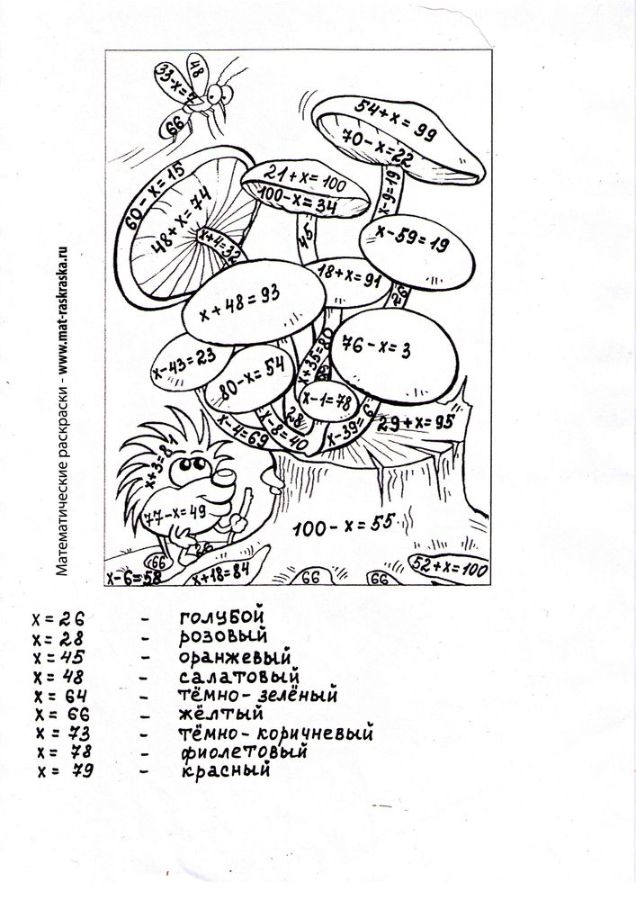Уравнения - сложение и вычитание в пределах 100. Ёж и опята