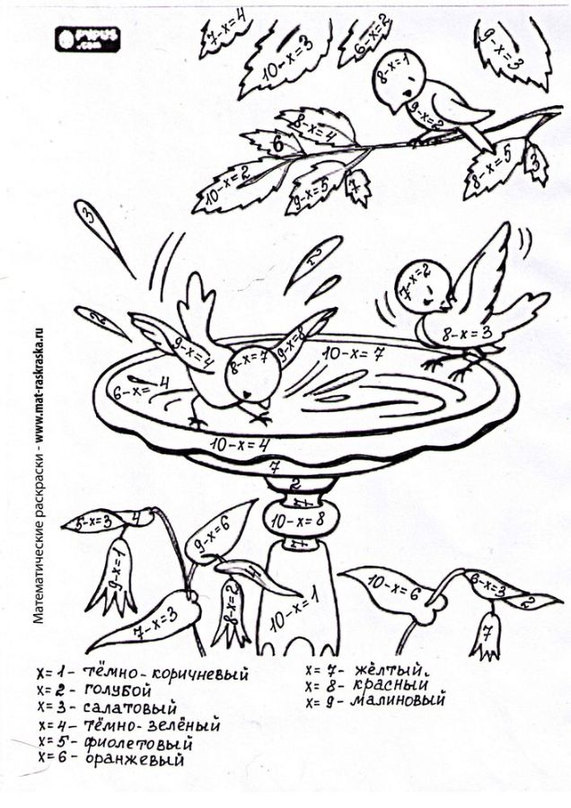 Понравились математические раскраски? Предлагаем Вам посмотреть раскраски по русскому языку и другим предметам: https://www.mat-raskraska.ru/products
