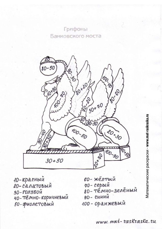 Сложение и вычитание круглых чисел. (Два варианта) Грифоны |