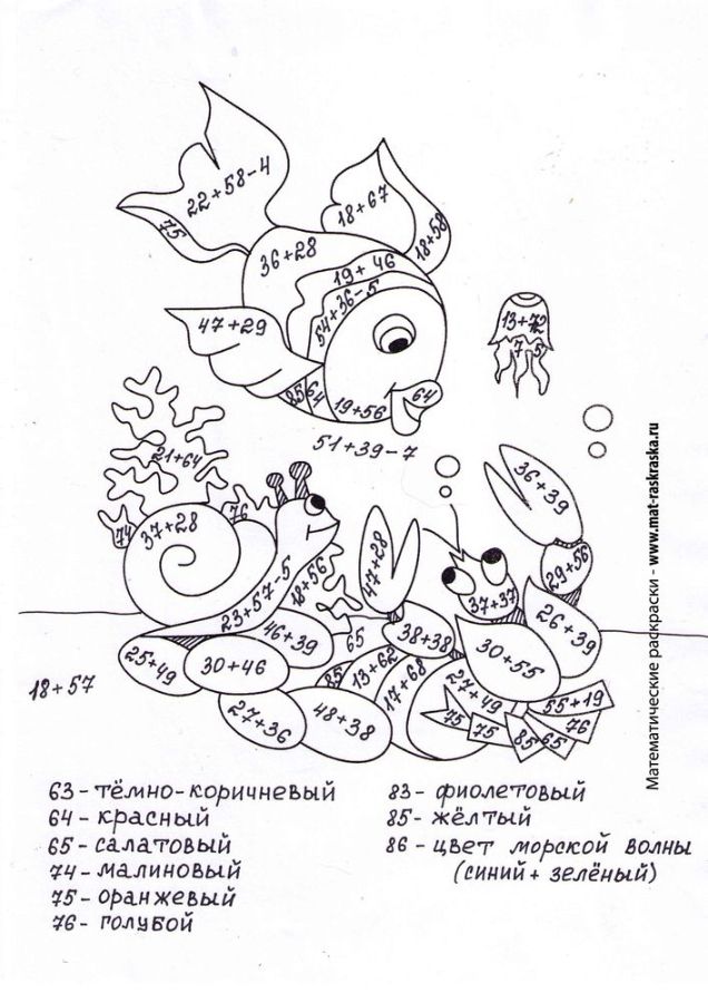 Сложение и вычитание с переходом через десяток. (Два варианта) Под водой. |