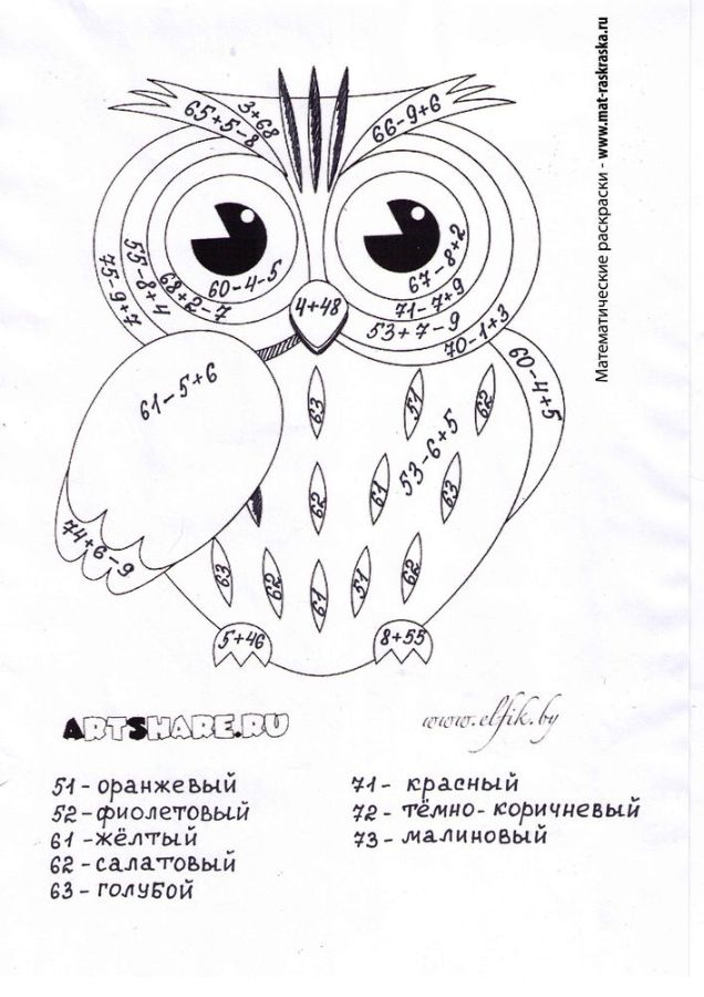 | Сложение и вычитание круглых чисел. Сова |