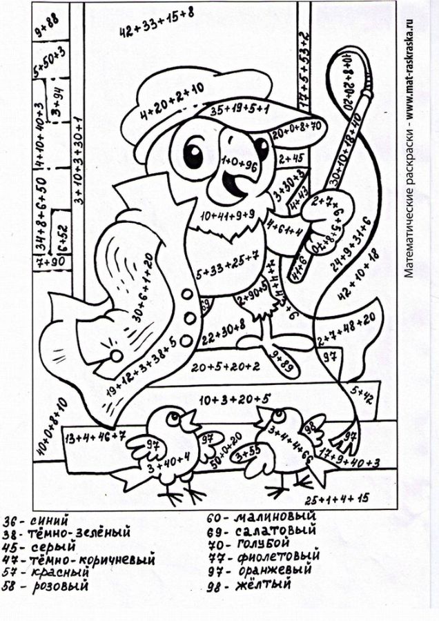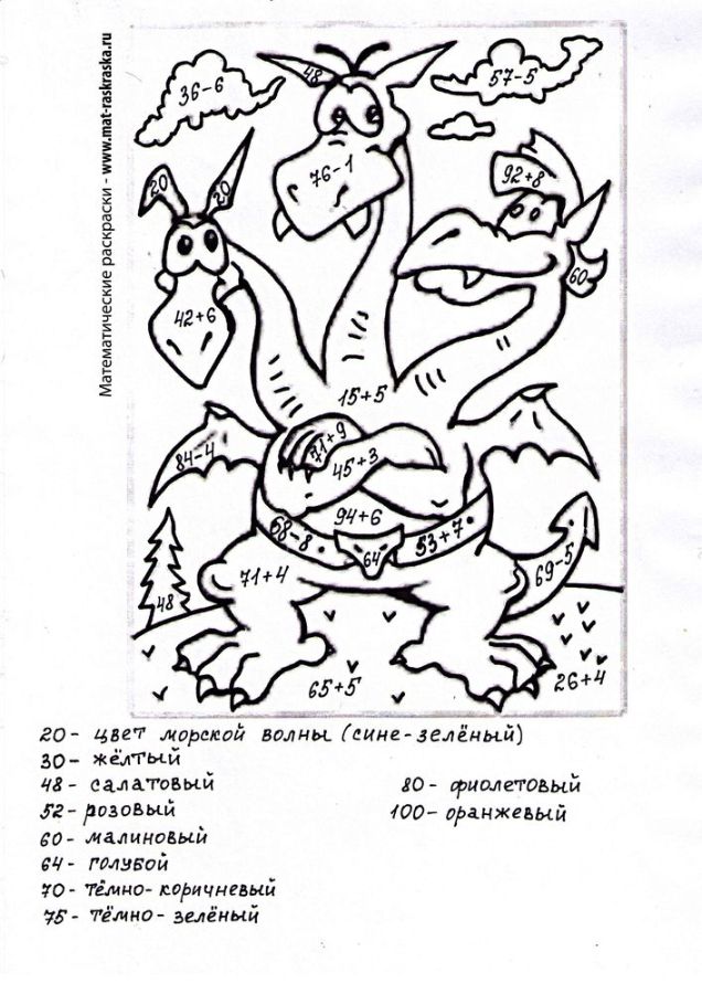 Сложение и вычитание в пределах 100. Вида 46+3,46-3,53+7,45-5. Змей Горыныч |