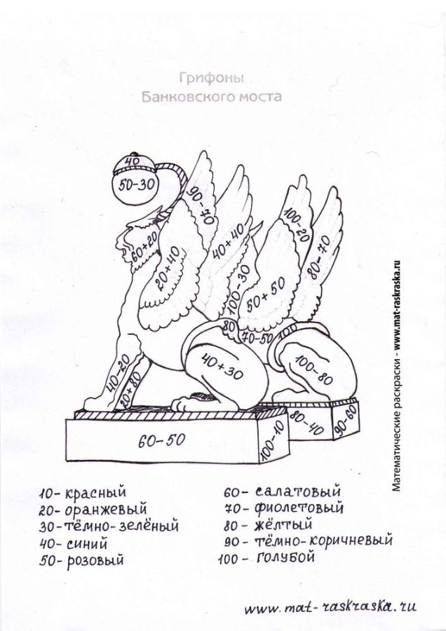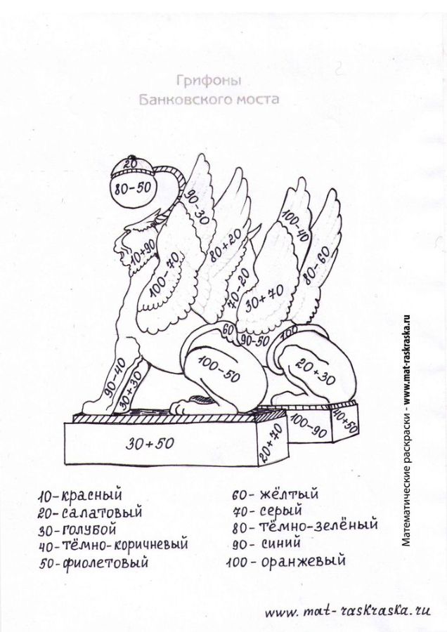 Сложение и вычитание круглых чисел. (Два варианта) Грифоны