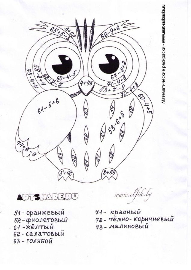 Понравились математические раскраски? Предлагаем Вам посмотреть раскраски по русскому языку и другим предметам: https://www.mat-raskraska.ru/products