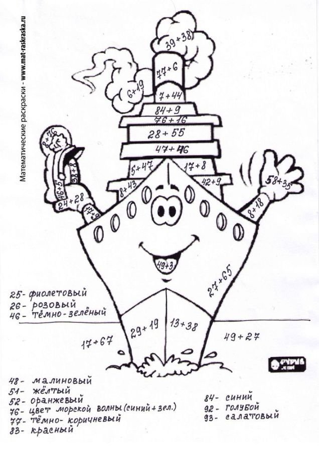 Понравились математические раскраски? Предлагаем Вам посмотреть раскраски по русскому языку и другим предметам: https://www.mat-raskraska.ru/products