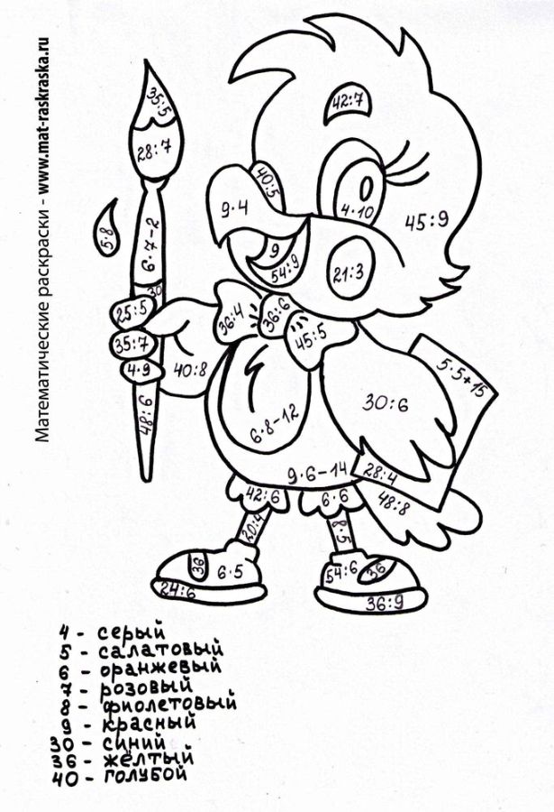 Понравились математические раскраски? Предлагаем Вам посмотреть раскраски по русскому языку и другим предметам: https://www.mat-raskraska.ru/products