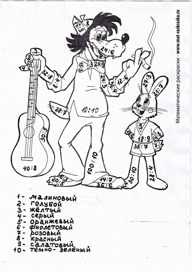 Понравились математические раскраски? Предлагаем Вам посмотреть раскраски по русскому языку и другим предметам: https://www.mat-raskraska.ru/products