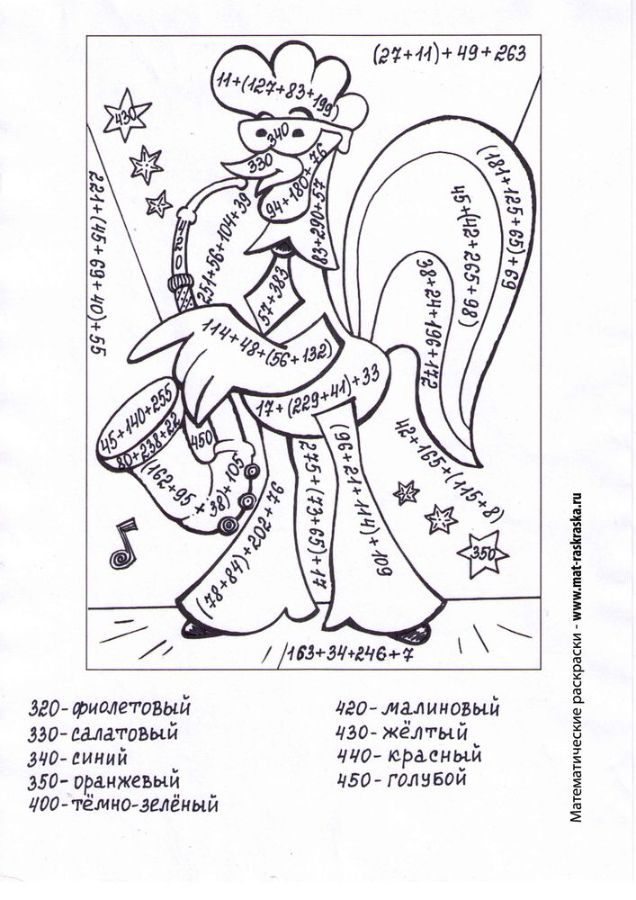 Понравились математические раскраски? Предлагаем Вам посмотреть раскраски по русскому языку и другим предметам: https://www.mat-raskraska.ru/products