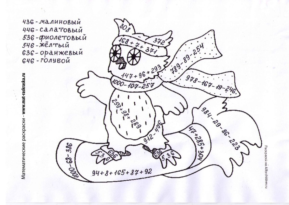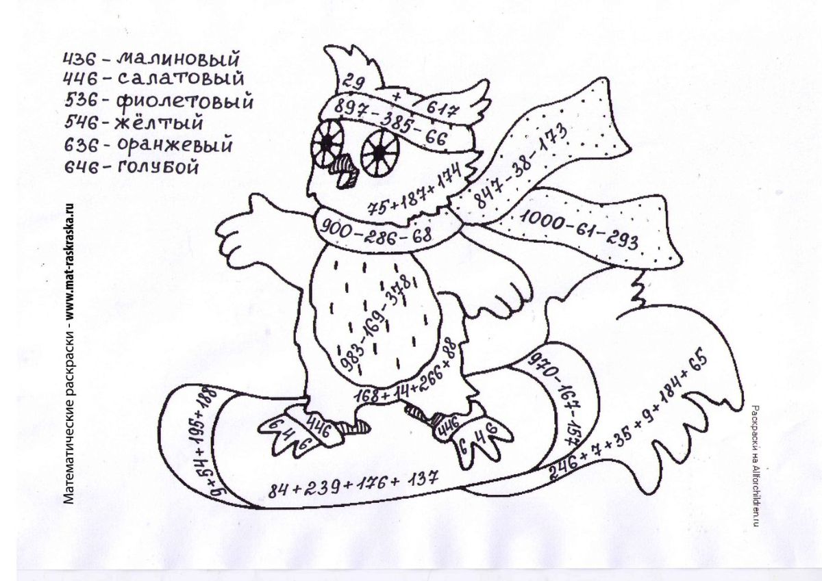 Сложение и вычитание многозначных чисел. (Два варианта) Сова на сноуборде.