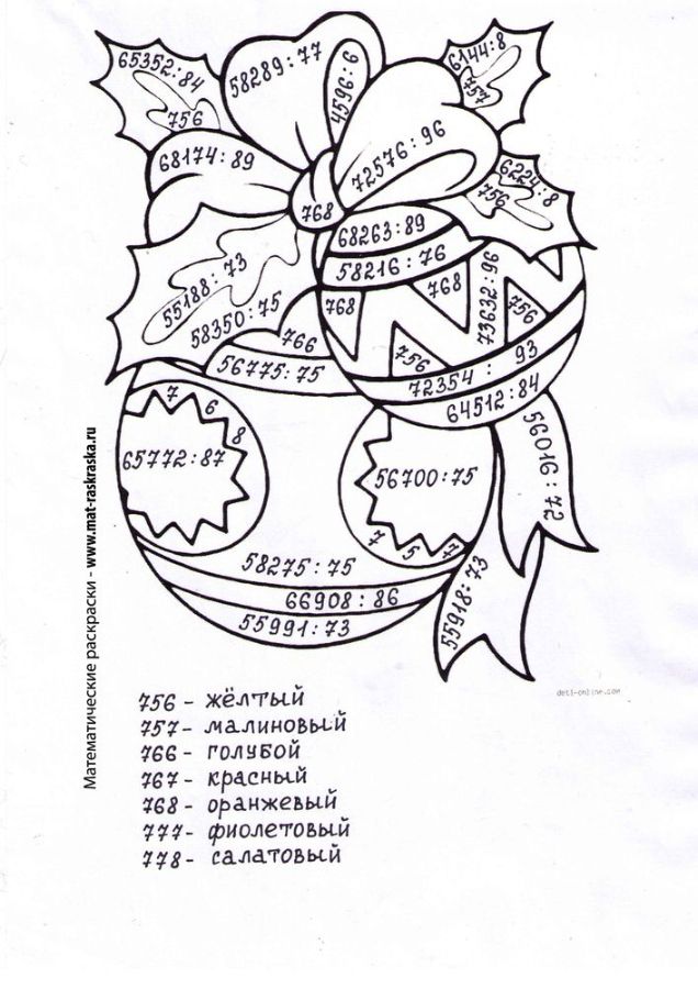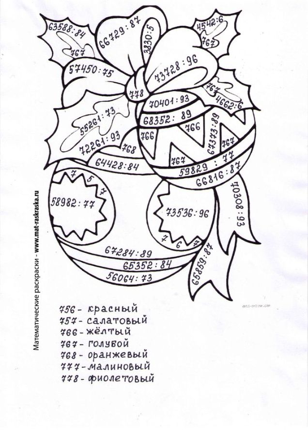 Понравились математические раскраски? Предлагаем Вам посмотреть раскраски по русскому языку и другим предметам: https://www.mat-raskraska.ru/products