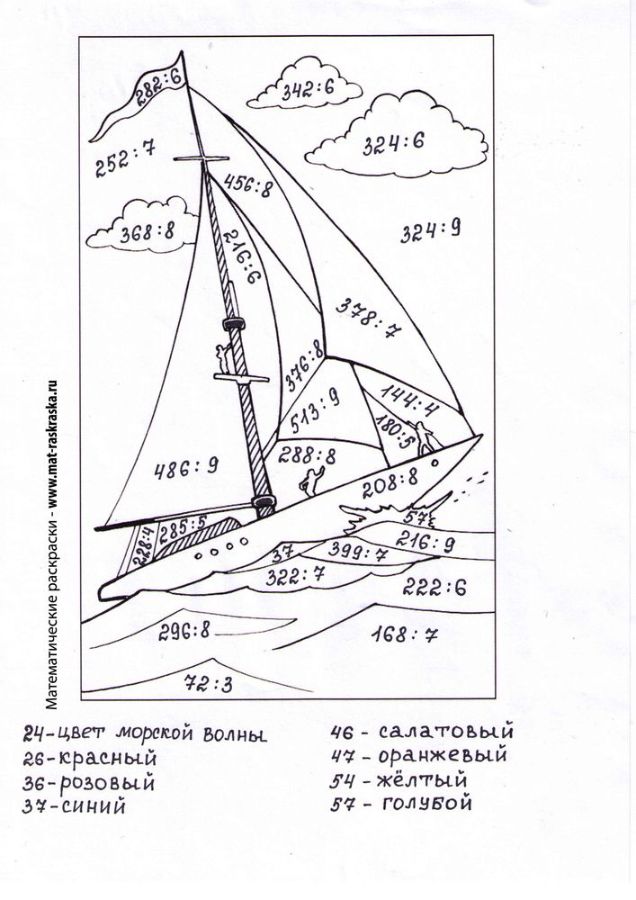 Понравились математические раскраски? Предлагаем Вам посмотреть раскраски по русскому языку и другим предметам: https://www.mat-raskraska.ru/products