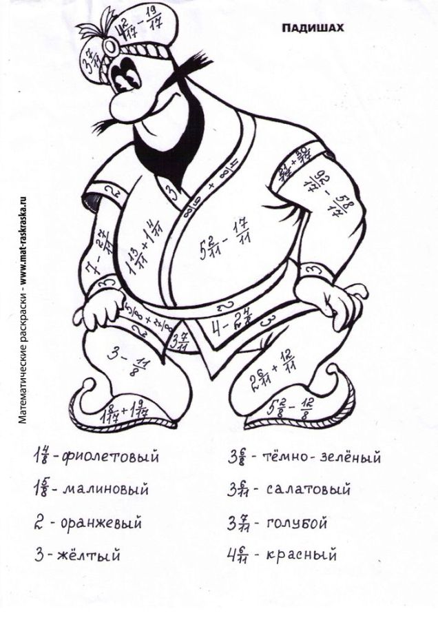 Понравились математические раскраски? Предлагаем Вам посмотреть раскраски по русскому языку и другим предметам: https://www.mat-raskraska.ru/products