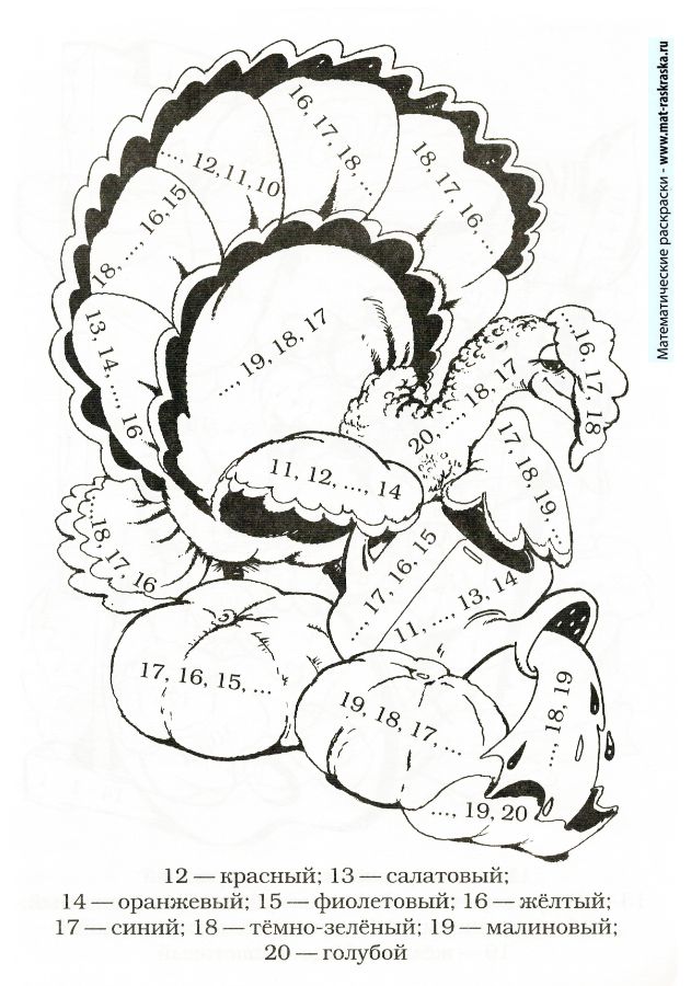 Математические раскраски для подготовки к школе и 1 класса. Числовой ряд 1-20.
