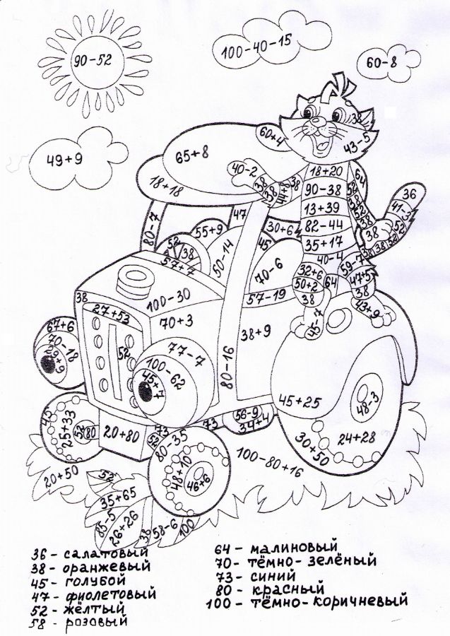 Понравились математические раскраски? Предлагаем Вам посмотреть раскраски по русскому языку и другим предметам: https://www.mat-raskraska.ru/products