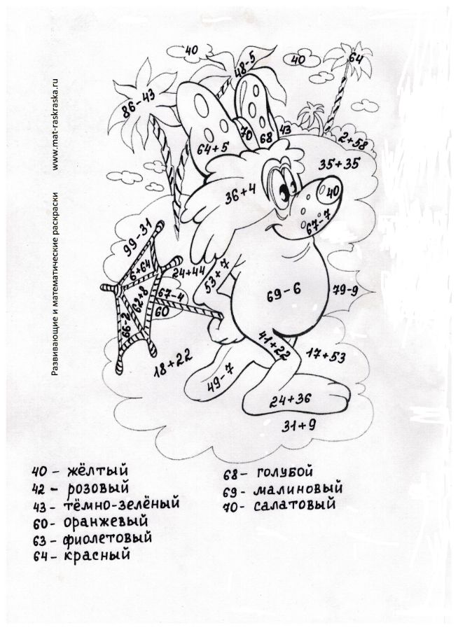 Понравились математические раскраски? Предлагаем Вам посмотреть раскраски по русскому языку и другим предметам: https://www.mat-raskraska.ru/products