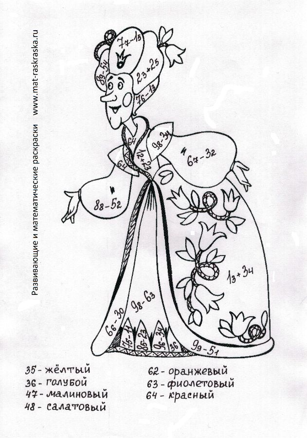 Понравились математические раскраски? Предлагаем Вам посмотреть раскраски по русскому языку и другим предметам: https://www.mat-raskraska.ru/products