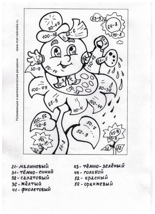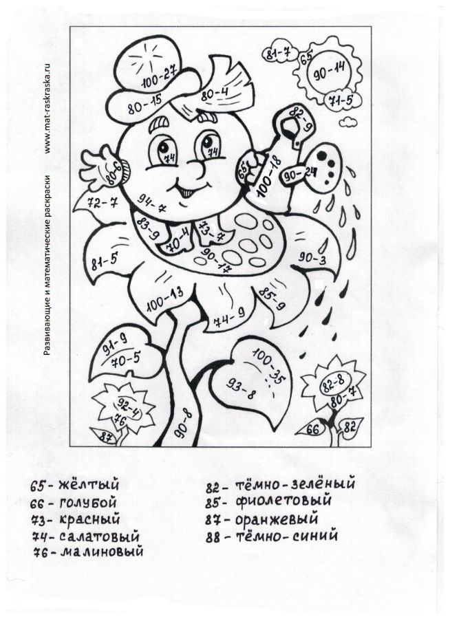 Понравились математические раскраски? Предлагаем Вам посмотреть раскраски по русскому языку и другим предметам: https://www.mat-raskraska.ru/products